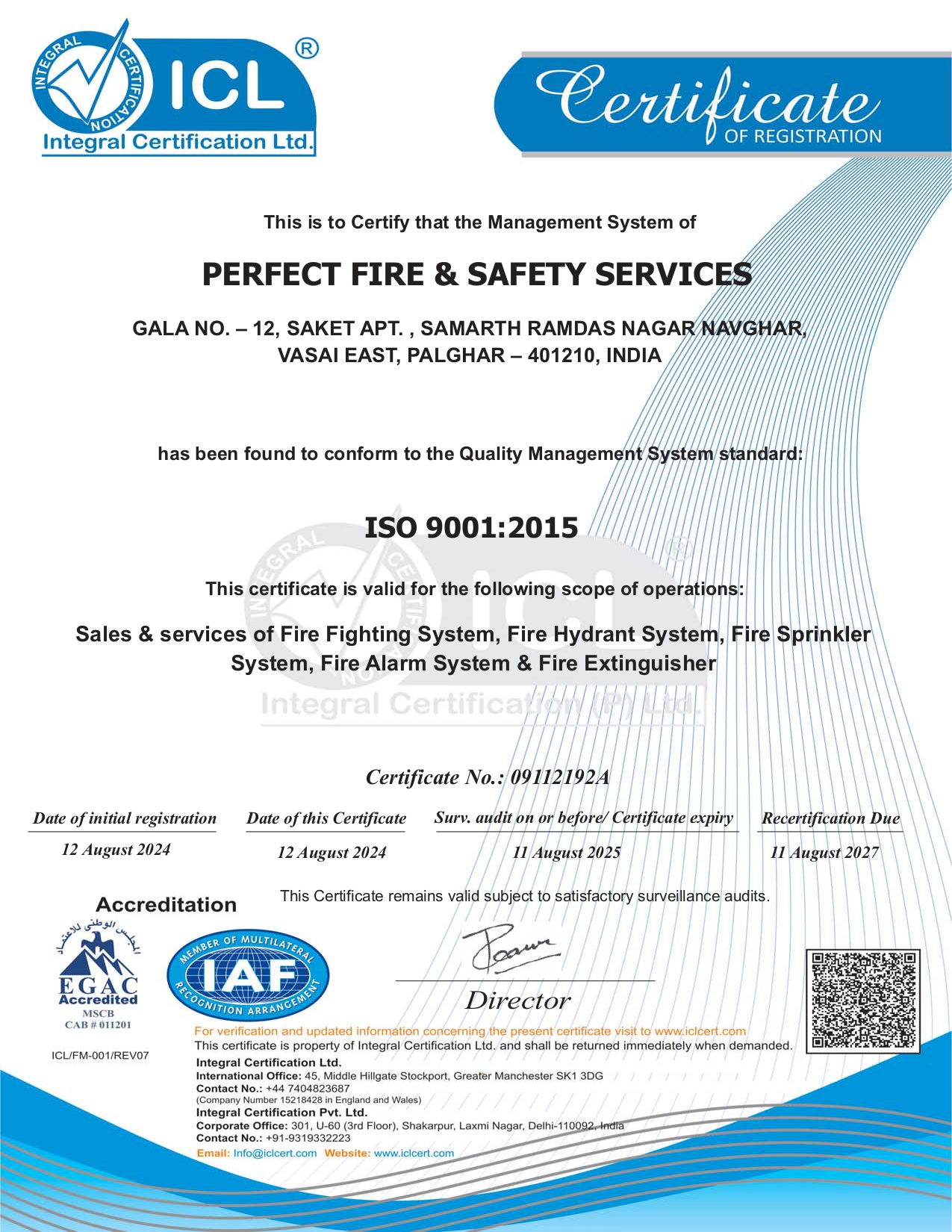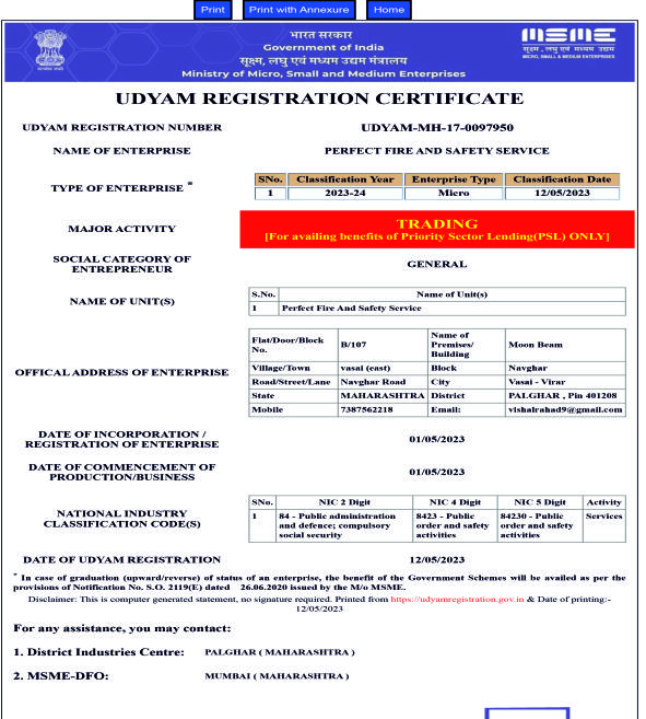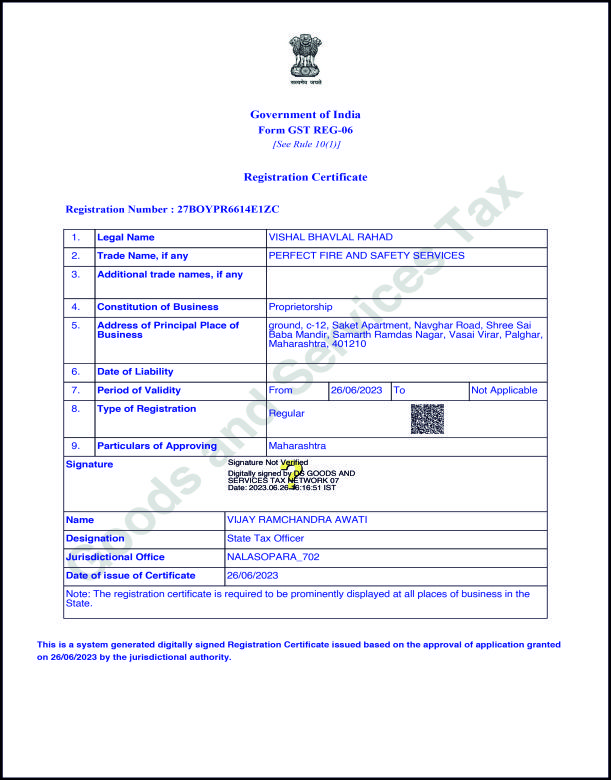 At Perfect Fire & Safety Services, our mission is to deliver world-class fire protection solutions that safeguard lives, property, and businesses across Vasai–Virar, Palghar, Mumbai, and beyond. We are committed to providing high-quality fire extinguishers, hydrant systems, sprinkler installations, and alarm systems that meet the highest national and international standards, including IS, BIS, and ISO 9001:2015 certifications. Our focus is on offering customized and reliable fire safety services tailored to the unique needs of residential, commercial, and industrial sectors. Through continuous innovation, skilled manpower, and advanced technology, we aim to enhance fire prevention measures and minimize risks. Above all, we strive to build long-term trust and reliability with our clients by ensuring timely service, expert guidance, and unwavering dedication to safety and excellence.